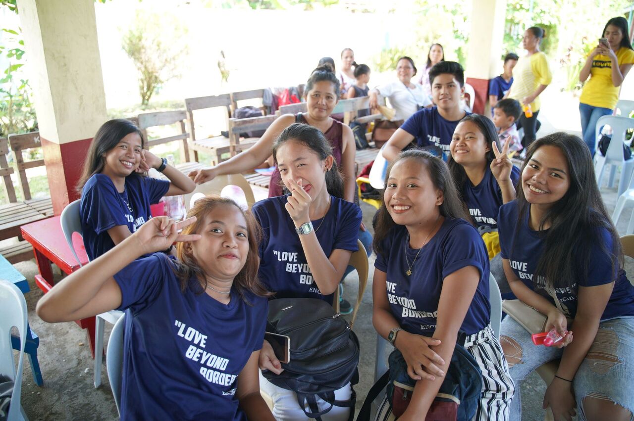 フィリピンは雨季。当日も雨天の中、通信状態が心配されましたが、ダヒカン地域の奨学生十数人と保護者が1カ所に集まり、なんとか日本のエンチャイルド事務局とミンダナオ島の子どもたちがオンラインで結ばれました。