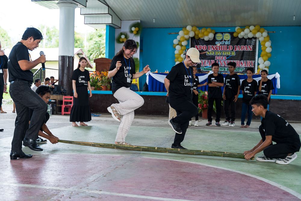 当日はさまざまなプログラムがあり、楽しかったです。特に、Eさん(日本の参加者)がフィリピンの伝統的なバンブーダンス、「ティニクリング」を踊り、さらに他の日本の皆さんも挑戦してくれ、私たちのダンスを楽しんでいる様子を見ていて私はうれしかったです。