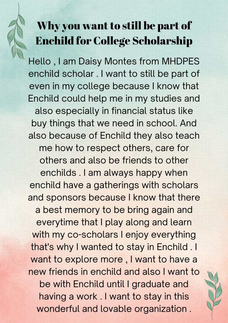 My impression of the study tour is great since it was held in June, and the month of June becomes part of Enchild when it comes to celebrating. The previous study tour is not the same as before, but it’s still great. Only a few Japanese sponsors attended the event, and it’s kind of sad that some of them weren’t able to come. But everyone did their best to visit us here in Philippines, and I’m very happy. But still we were able to meet some of the beneficiaries and it’s good to see them again after 4 years.