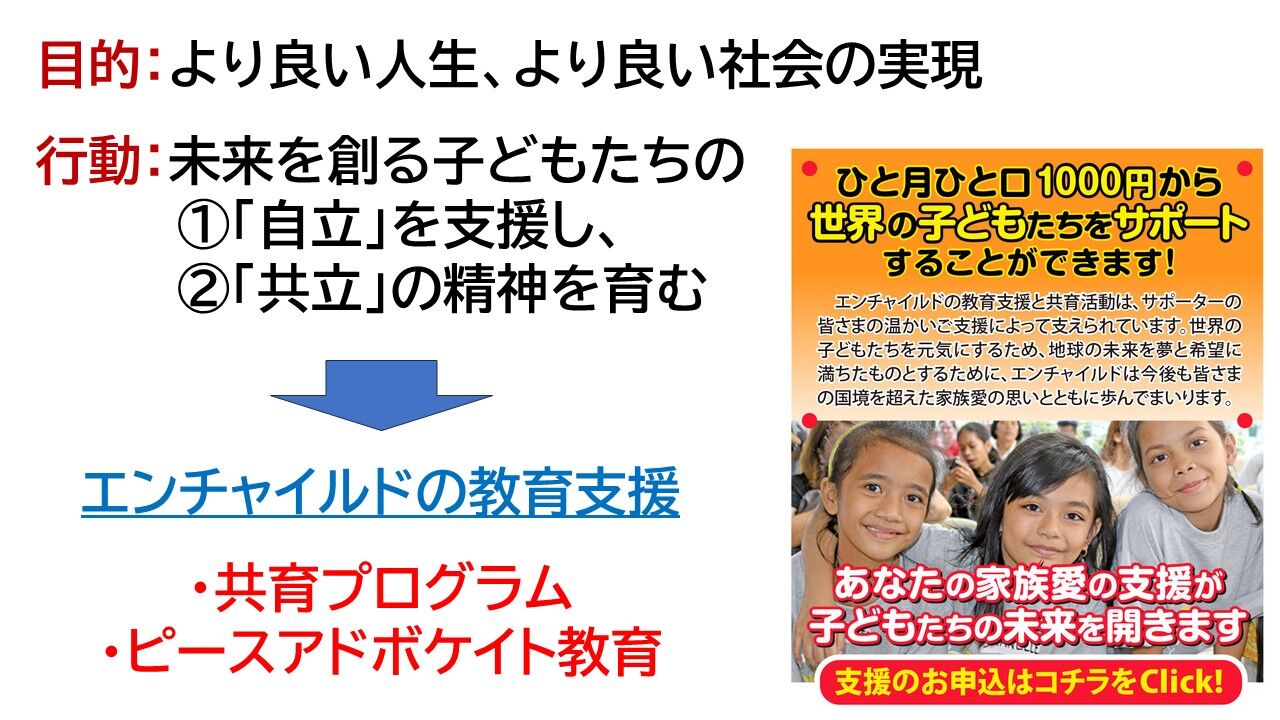☆エンチャイルド・ユースのピース・アドボケイト(平和の擁護者、推進者)としての成長のため