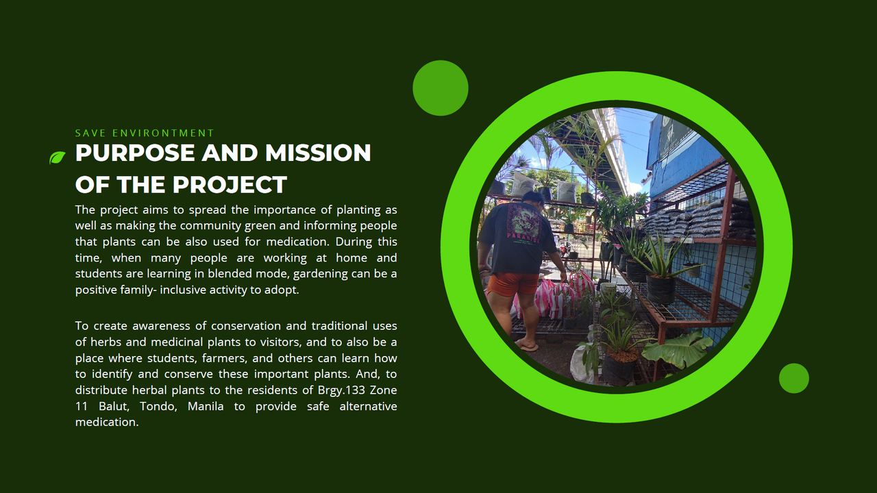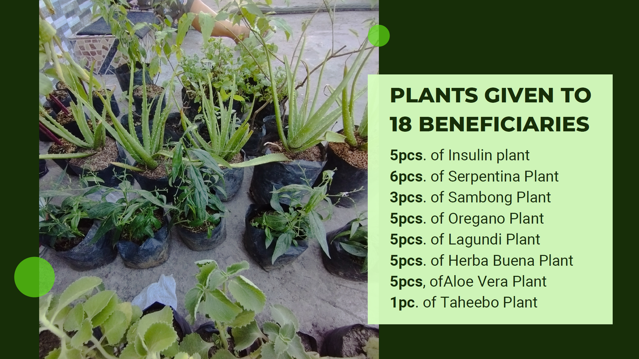 そして、マニラ、トンド地区のバルットの住民にハーブ植物を配布し、安全な代替医療を提供することです。