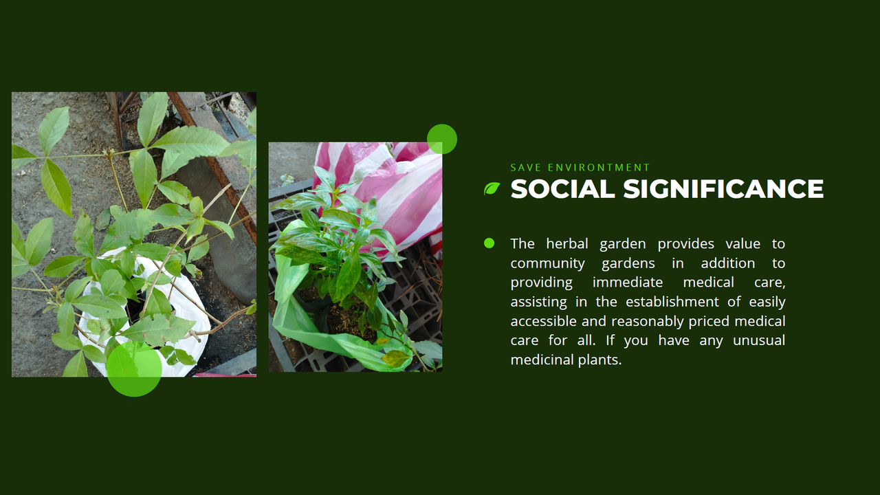 ハーブを育てることで、即効性のある医療を提供できるだけでなく、地域の公園の庭の価値を高め、全ての人が容易に入手できるようになり、安価な医療を確立することに貢献できます。