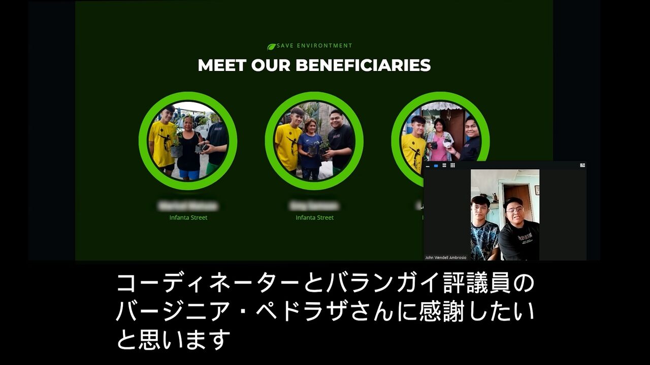 マニラ市トンド地区バルットのエンチャイルド奨学生、ジョン・ウェンデル・アンブロシオ君とガブリエル・バラネ君のチームによるオンラインでの結果報告会(2023年2月19日)のプレゼン内容です。