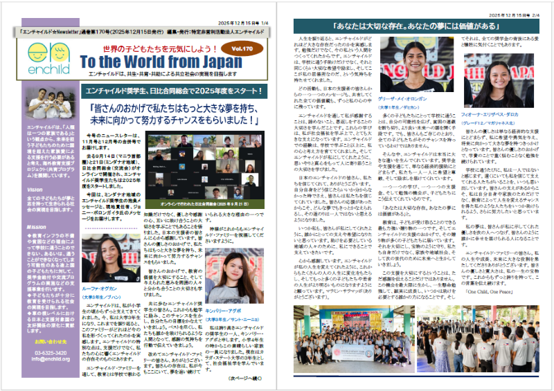 抱負メッセージは、エンチャイルド奨学生たちと共に一年を過ごす上で、支援者にとって大変重要な共有情報です。ぜひお読みください。
