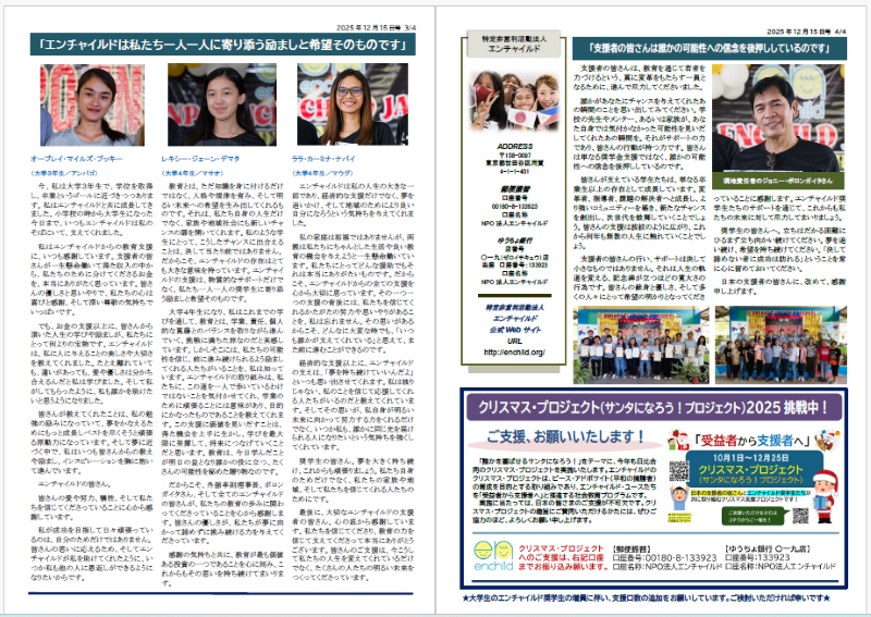 エンチャイルド奨学生の2025年度の抱負メッセージの紹介をしています。